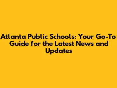 Atlanta Public Schools: Latest News & Updates