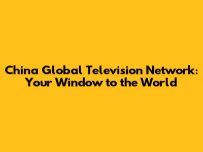 China Global Television Network: Your Window To The World