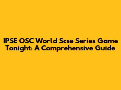 IPSE OSC World Scse Series Game Tonight: What You Need To Know