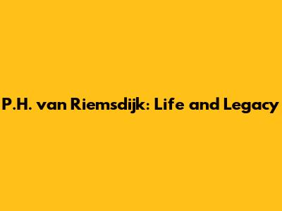 P.H. Van Riemsdijk: Life And Legacy