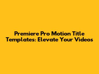 Premiere Pro Motion Title Templates: Elevate Your Videos