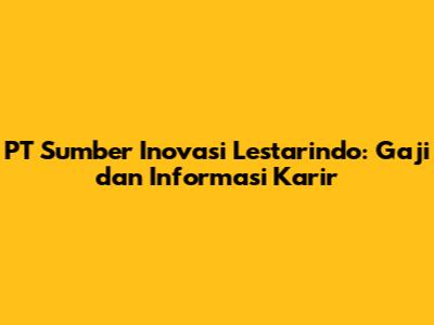 PT Sumber Inovasi Lestarindo: Gaji Dan Informasi Karir
