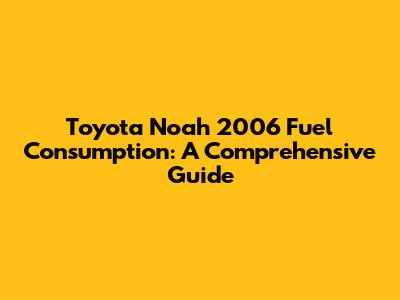 Understanding the Toyota Noah 2006's Fuel Consumption