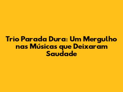 Como as Músicas do Trio Parada Dura Ainda Nos Tocam